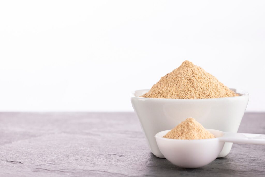 Transférez le mélange dans un bol et incorporez la poudre d’amande, la poudre de maca et l’extrait de rose. Mélangez soigneusement.