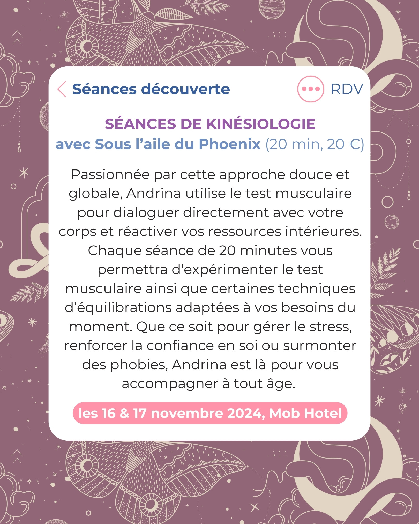 Que ce soit pour gérer le stress, renforcer la confiance en soi ou surmonter des phobies, Andrina est là pour vous accompagner à tout âge.